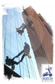 SERVIN CHILE, tiene una división de limpieza exterior de vidrios en altura. Esta labor apunta a atender las necesidades que tienen edificios de oficinas que requieren mantener limpios sus vidrios, debido a las nuevas técnicas de instalación de vidrios termopaneles, que ayudan a eliminar ruidos externos, conservar la temperatura interior y filtrar en parte la luz natural. Para esto es necesario externalizar el servicio de limpieza a empresas especializadas en esta faena. SERVIN CHILE, atiende